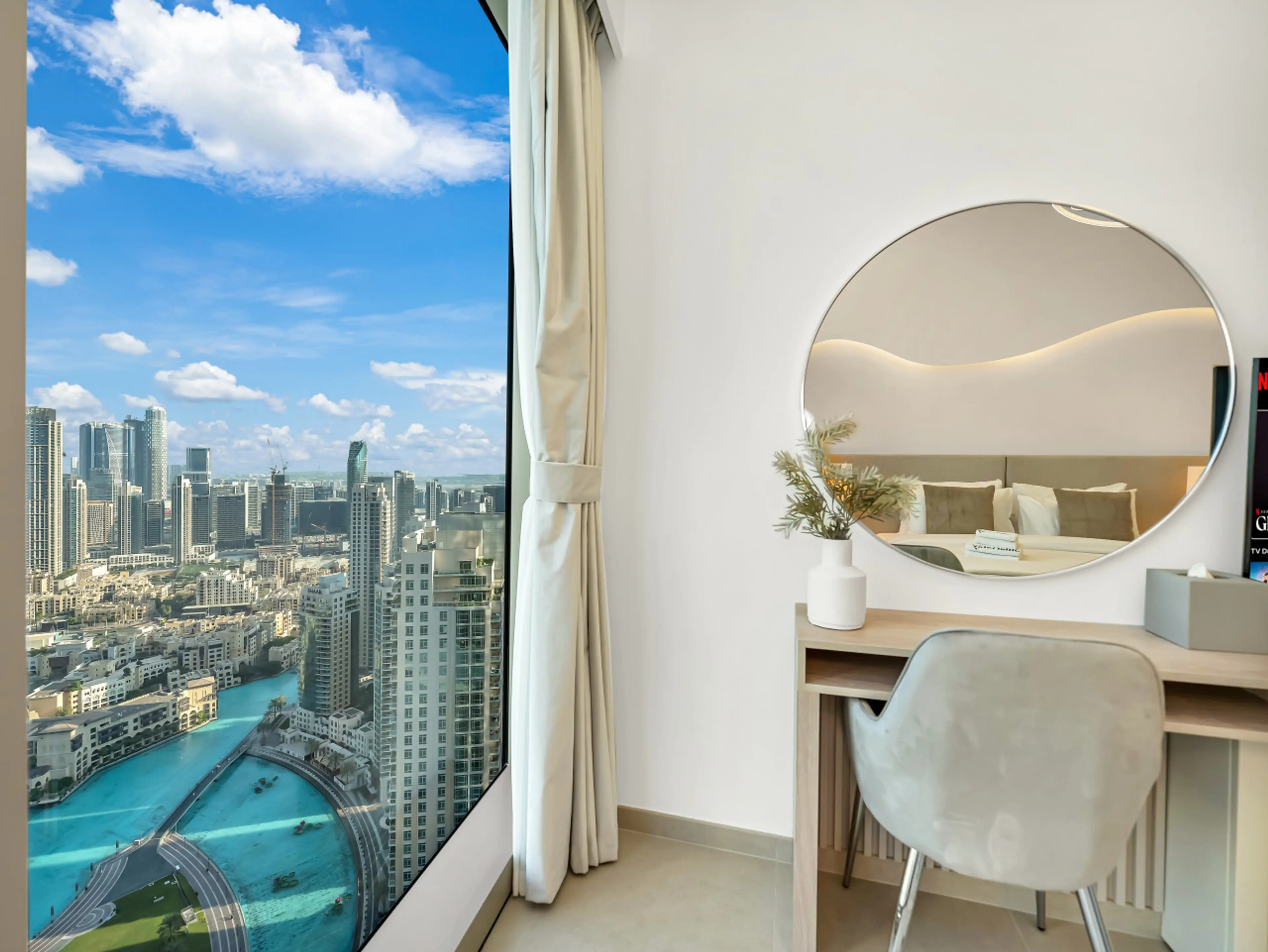 Positive: الشقه واسعه ونظيفه والمالك متعاون والشقه غير مخدومه مثل الفنادق لاكن إطلالة الشقه مباشره على برج خليفه والنافورة الراقصه وهذي تعتبر إطلالة جميلة جدا بالمساء وقريبه من دبي مول مشي على الأقدام تقريبا 5 دقائق من دبي ويوجد مواقف سيارات ونادي رياضي ومسبح
